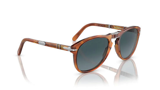 The Steve McQueen Sunglasses are a special edition featured product from Persol and only available at select stockists.One of the classic features of theses superb sunglasses is the unique blue polarized lenses.The lenses have been specifically designed to give enhanced visual clarity and to reduce glare making them the perfect choice for those that love the open road. Steve McQueen Sunglasses are also famous for their folding design allowing them to be compact and kept safe in a superb luxury leather case.